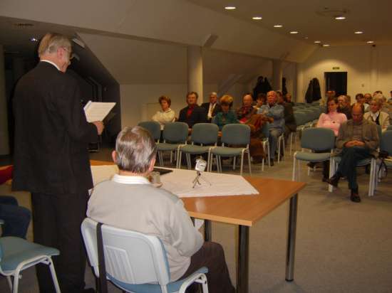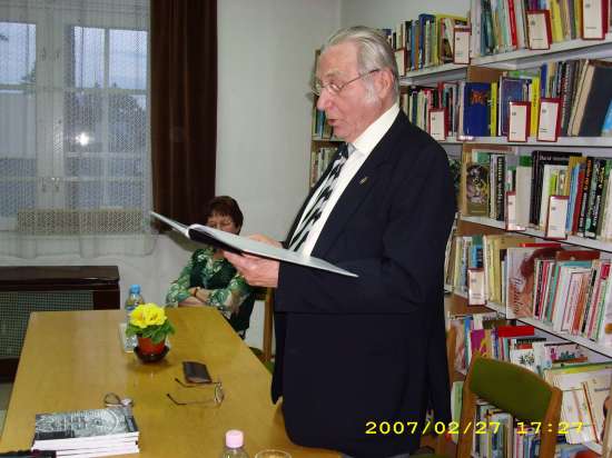 Halis István Városi Könyvtár kiskanizsai fiókkönyvtára. Házigazda (a felolvasó Rózsás János mellett ül) Czupi Gyula, a könyvtár igazgatója.