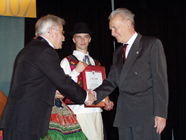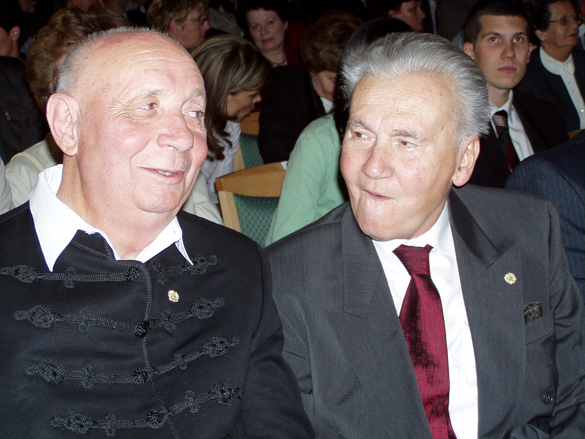 A Pro Urbe díj átadásakor, 1997-ben, a Medgyaszay-házban. A díjat marton István polgármester úr adja át.
