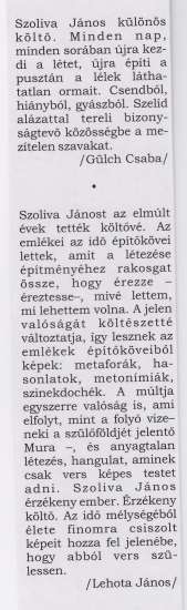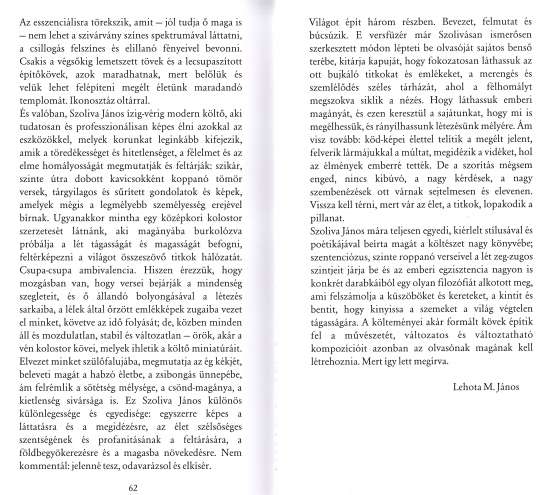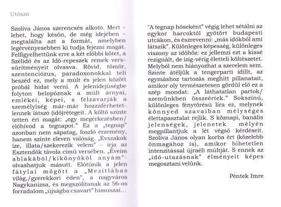 A Más időkből ami látszik utószava Péntek Imre költőtől, és fent fülszövegei Glüch Csabától és Lehota Jánostól. |
