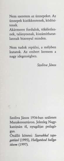 A kötetekből a címadó verset, ha nics, akor a kötet, vagy a címadó fejezet első versét, és még néhányat közlünk ízelítőiként, a borítóképek között. A kékkel látható címek linkek, melyek elvezetnek a Halis István Városi Könyvtár katalógisában a könyvhöz.