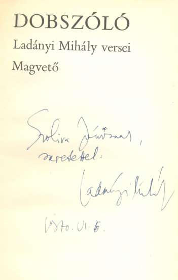 Szoliva Jánosnak szeretettel Lafányi Mihály 1970. VI. 6. |