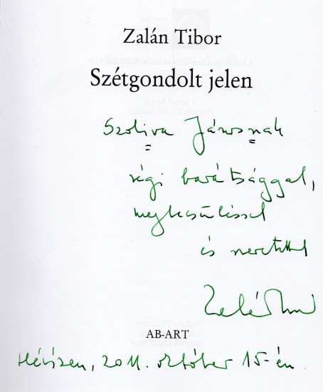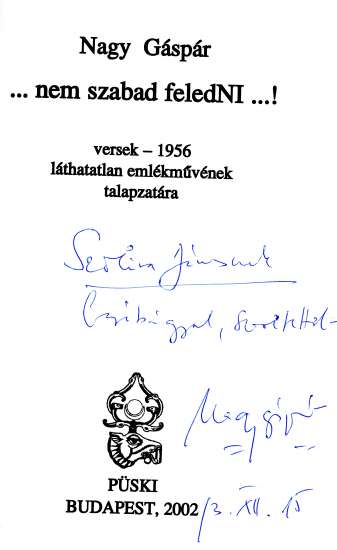 Szoliva Jánosnak és Gábor fiának sok szeretettel ajánlom az új Pilinszky-út ...