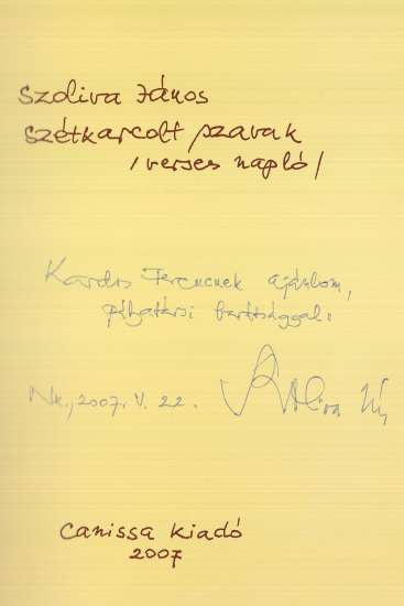 Kardos Ferencnek ajánlom, pályatársi barátsággal:NK., 2007. V. 22.Szoliva János |