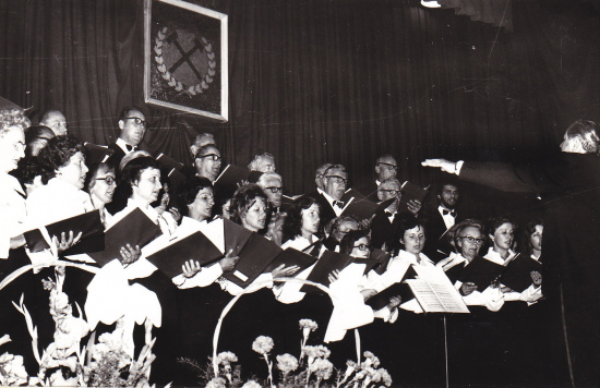 Énekkarunk két éves munkájának első bemutatására került sor 1976 május 4-én, az Erkel Művelődési Házban.
