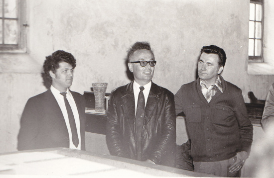 A képen bal oldalon Harkány László, középen Németh József művelődéstörténész, pedagógus, a Göcsej Múzeum akkor igazgatója áll.